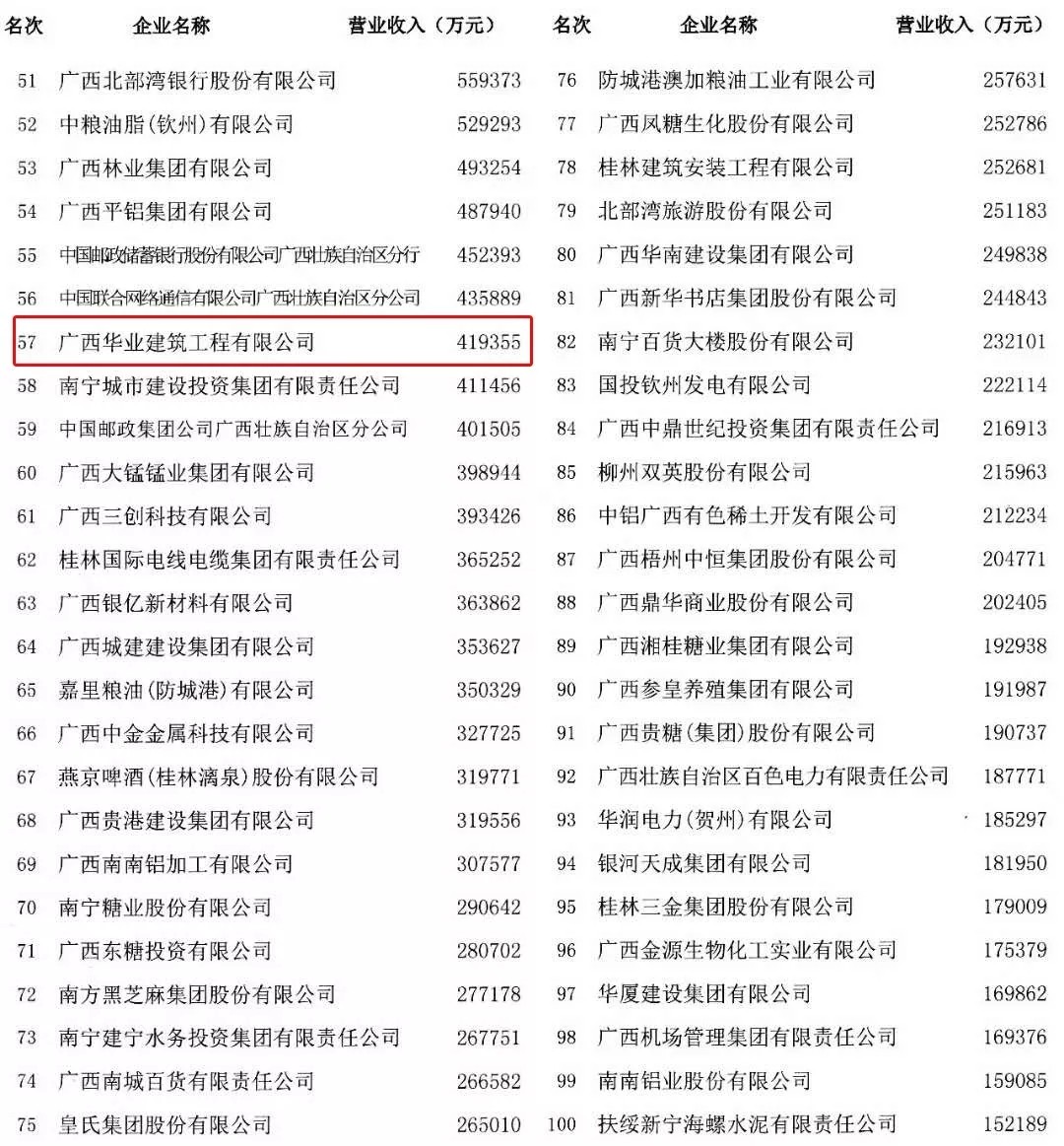 2018廣西百強企業(yè)隆重揭曉! 廣西華業(yè)建筑工程有限公司位列廣西百強企業(yè)第57名,廣西民營企業(yè)50強第15名!