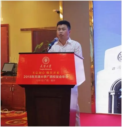 當(dāng)天,龍其生董事長出席了大會(huì)并致辭,天津大學(xué)校友總會(huì)副會(huì)長、天津大學(xué)原黨委副書記、紀(jì)委書記汪曣,國際教育學(xué)院院長陳志華、遠(yuǎn)程與繼續(xù)教育學(xué)院院長殷紅春等母校領(lǐng)導(dǎo)出席了大會(huì)并發(fā)言,出席大會(huì)的嘉賓還有天大研究生院綜合管理辦公室主任盧錚松、校友與基金事務(wù)處副處長谷鈺、自動(dòng)化學(xué)院副教授蘇毅珊以及來自兄弟高校廣西校友會(huì)的代表。