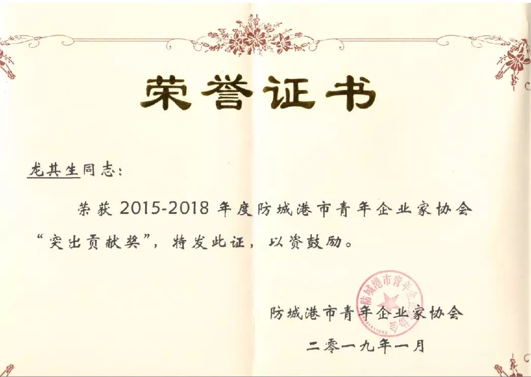 熱烈慶祝廣西華業(yè)投資集團(tuán)有限公司董事長(zhǎng)、防城港市青年企業(yè)家協(xié)會(huì)會(huì)長(zhǎng)龍其生榮獲廣西青年企業(yè)家協(xié)會(huì)2018年度“廣西優(yōu)秀青年企業(yè)家”榮譽(yù)稱號(hào)和2015-2018年度防城港市青年企業(yè)家“突出貢獻(xiàn)獎(jiǎng)”!防城港市青年企業(yè)家協(xié)會(huì)也榮獲2018年廣西青年企業(yè)家協(xié)會(huì)“優(yōu)秀團(tuán)體會(huì)員”榮譽(yù)稱號(hào)!