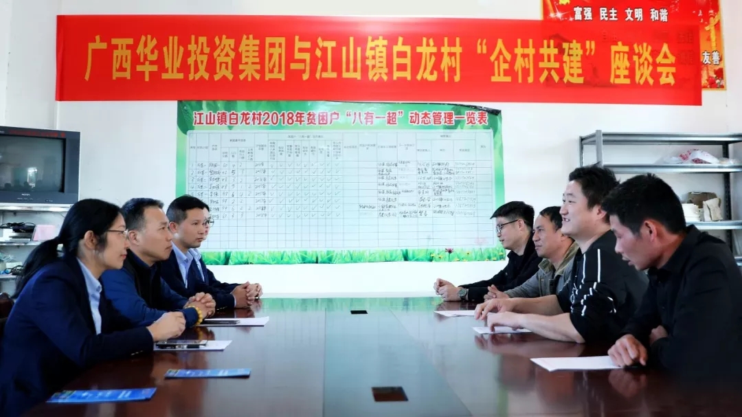 華業(yè)集團(tuán)總裁龍其偉和白龍村駐村第一書記黃景燦、黨支部書記江朝鋒及部分村委成員,就如何改變防城區(qū)江山鎮(zhèn)白龍村貧困戶現(xiàn)狀,加快脫貧致富步伐,實(shí)現(xiàn)白龍村全體村民共同富裕展開(kāi)了座談交流,龍其偉總裁提出:扶貧不能僅靠捐錢捐物,更重要的是要帶動(dòng)貧困戶從思想上、產(chǎn)業(yè)開(kāi)發(fā)上、就業(yè)出路上全方位開(kāi)展扶貧工作,增強(qiáng)貧困戶自力更生謀發(fā)展的能力,從根源上摘掉貧困帽子,共同推動(dòng)實(shí)現(xiàn)全面建設(shè)小康社會(huì)的目標(biāo)。
