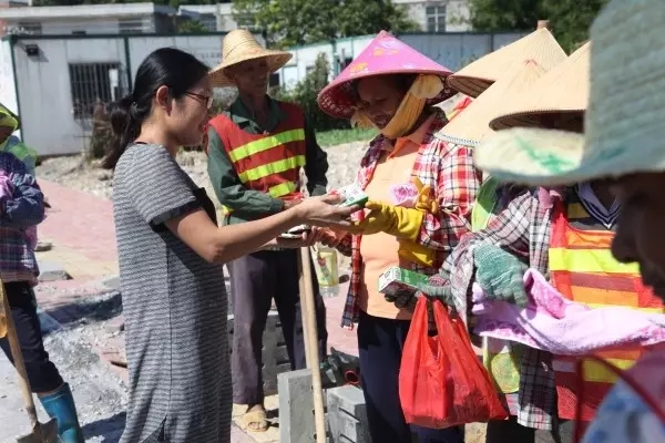 防城港的夏天持續(xù)高溫,熱氣襲人,但為了保證施工進(jìn)度,公司項目部員工不畏困難,戰(zhàn)高溫、斗酷暑,依舊堅守崗位。頂著高溫奮斗在一線崗位的員工牽動著公司領(lǐng)導(dǎo)的心,7月25日下午,在防城區(qū)總工會的支持下,受集團(tuán)公司龍其偉總裁和龍其生董事長的委托,集團(tuán)副總裁唐光源、工會主席鐘麗霞、副總經(jīng)理龐樹玉一行前往防城港市東灣綠化工程施工現(xiàn)場看望奮戰(zhàn)在高溫一線的項目部員工,為他們送去了夏季防暑物品,為員工們帶來了絲絲“清涼”。
